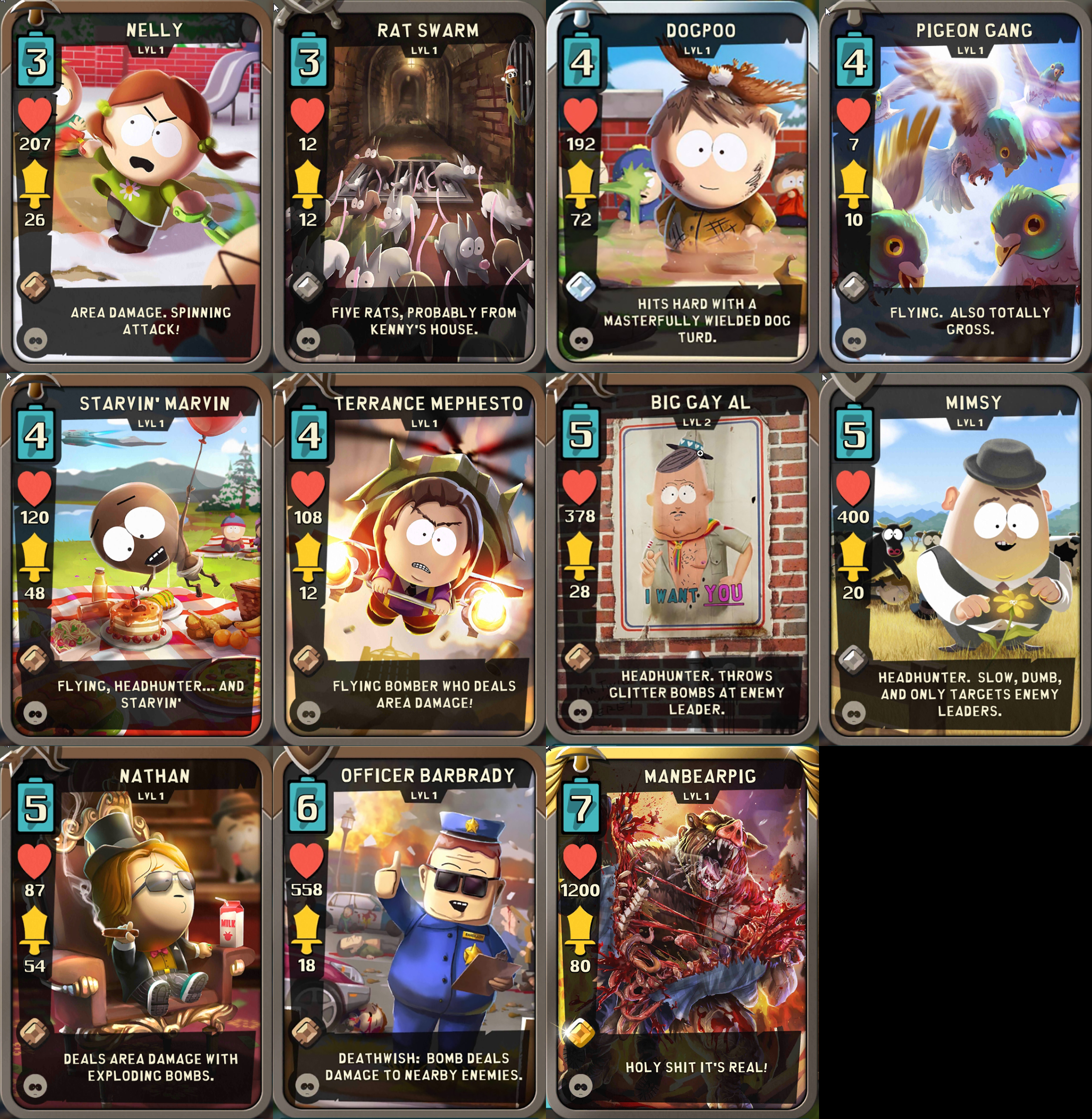 Check the Gamepedia article for more information on South Park: Phone Destroyer Cards
